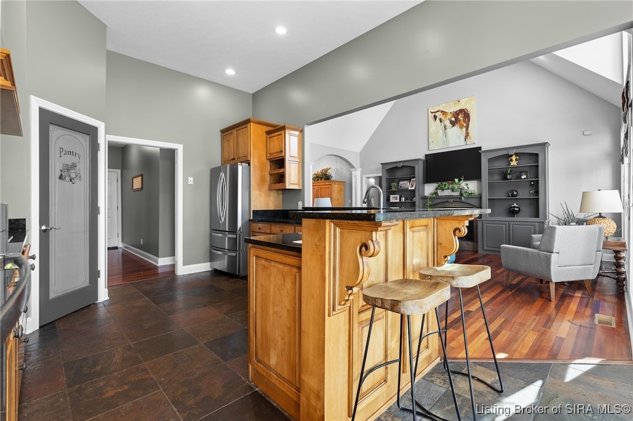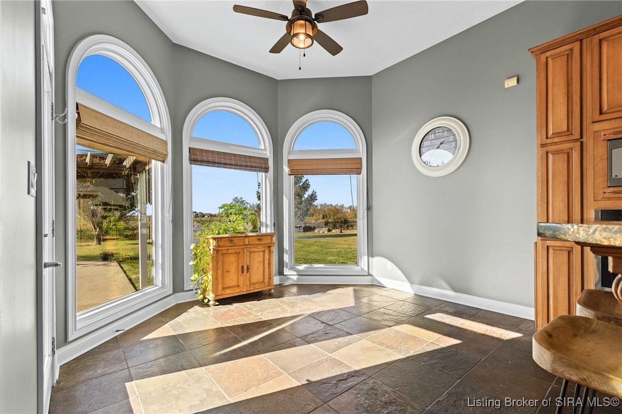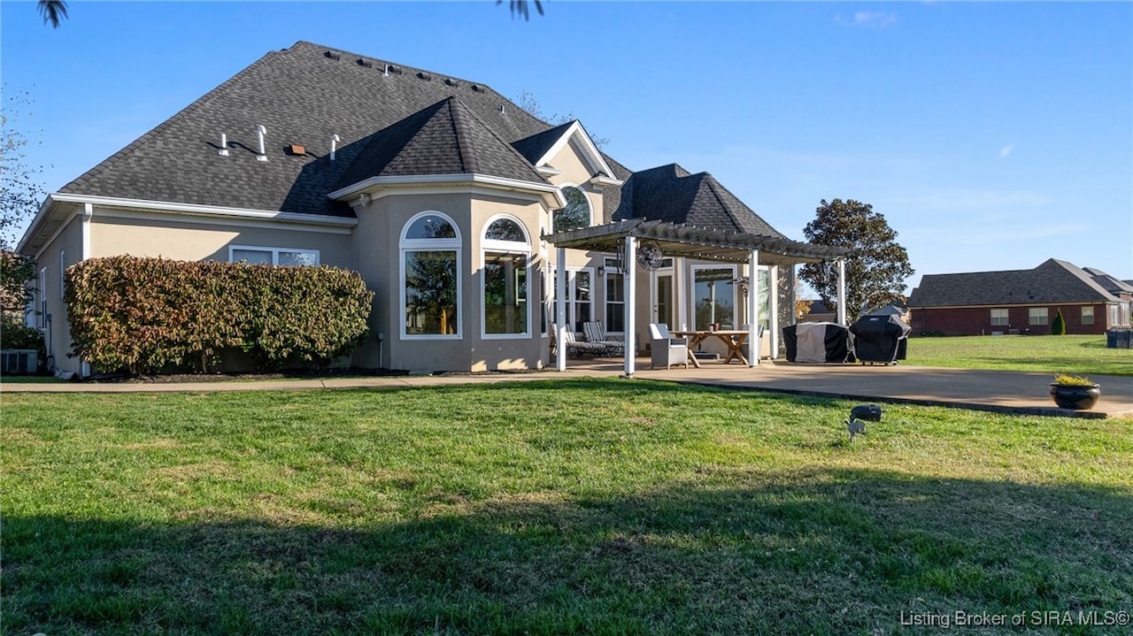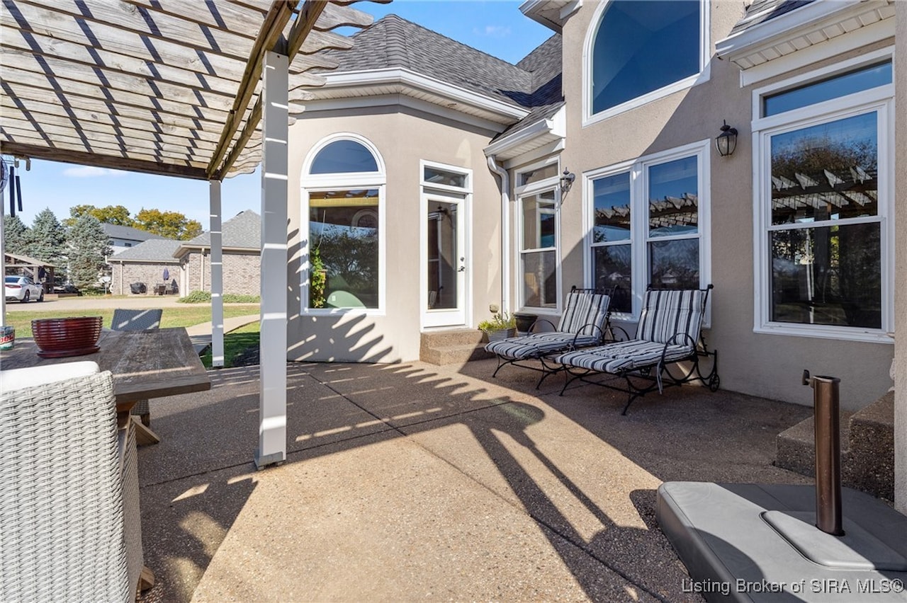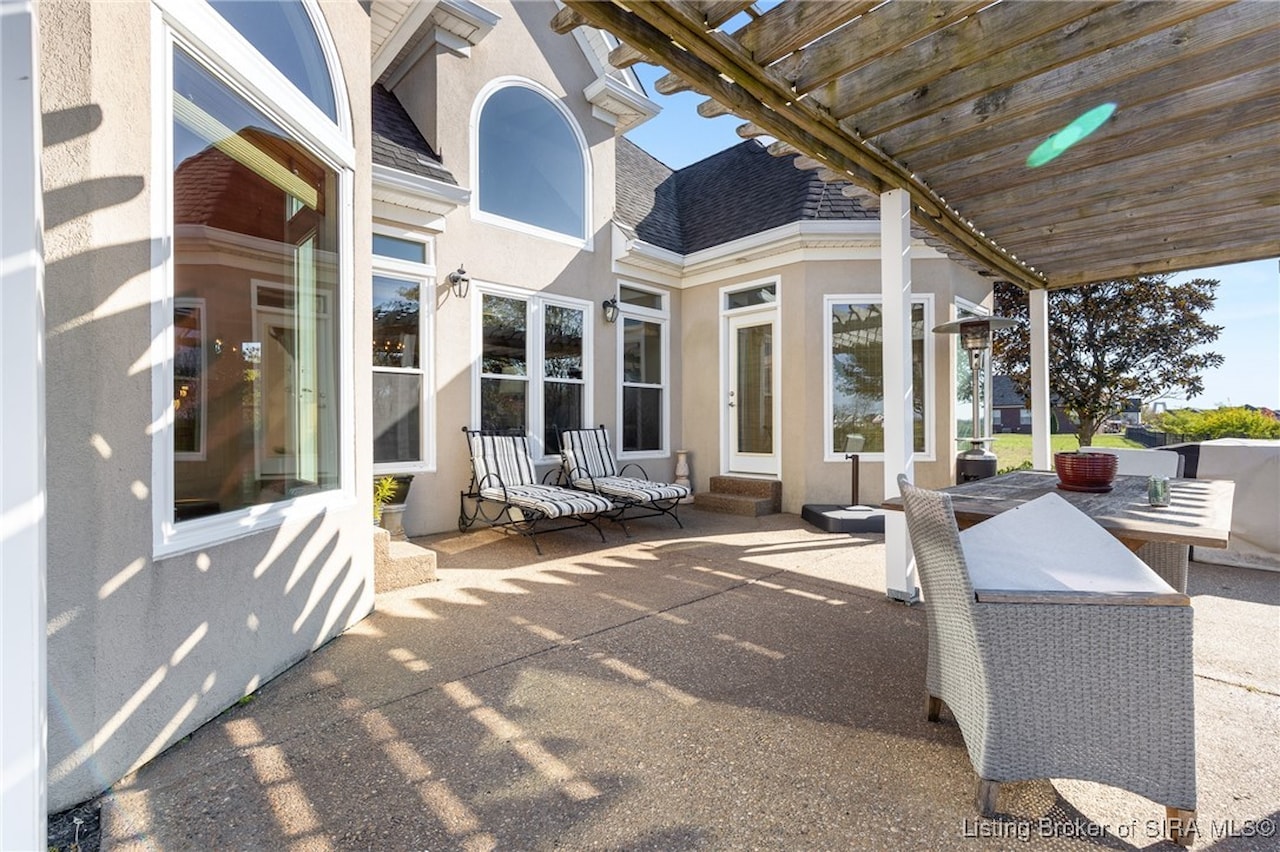 Welcome to 113 Bluff Ridge Road where sophistication meets serenity in one of Jeffersonville's most prestigious communities, Quarry Bluff Estates. Perfectly positioned atop the breathtaking quarry, this single-level luxury ranch offers timeless curb appeal, elegant comfort, and a truly remarkable setting. The spacious open floor plan features vaulted ceilings, a cozy gas fireplace, and abundant natural light that creates a warm, inviting atmosphere throughout. The kitchen provides generous counter space, stainless steel appliances, and both casual and formal dining options perfect for hosting family and friends. The private primary suite is a retreat of its own, featuring a double vanity with a make-up station, walk-in shower, and a spacious closet. Step outside to enjoy one of the largest backyards in the neighborhood with a sprawling concrete patio and pergola the perfect place to take in peaceful quarry views. With an oversized three-car garage, ample off-street parking, and an opportunity to finish attic space, this home offers both practicality and possibility. Experience refined living in a community unlike any other in Southern Indiana.