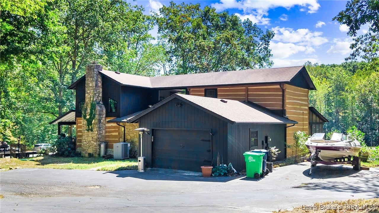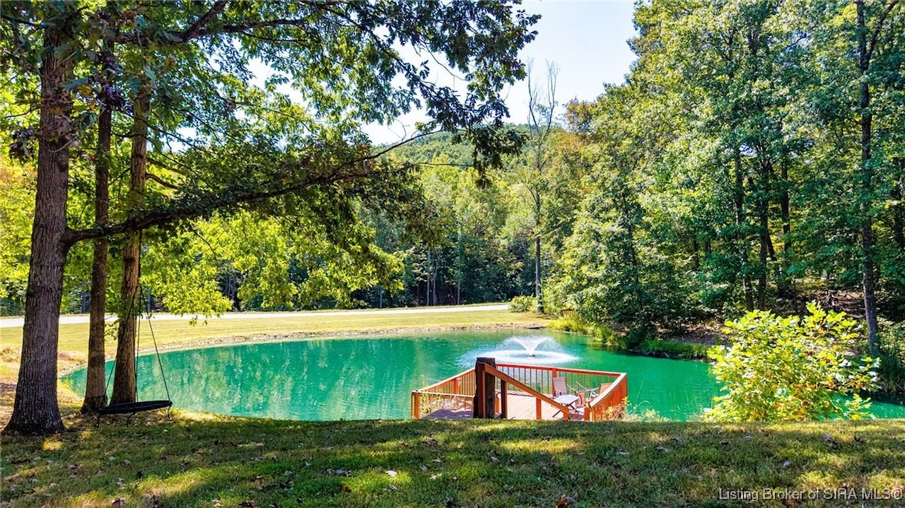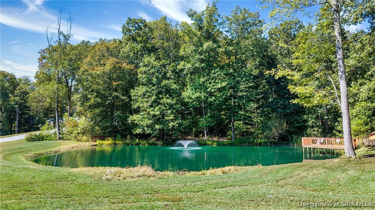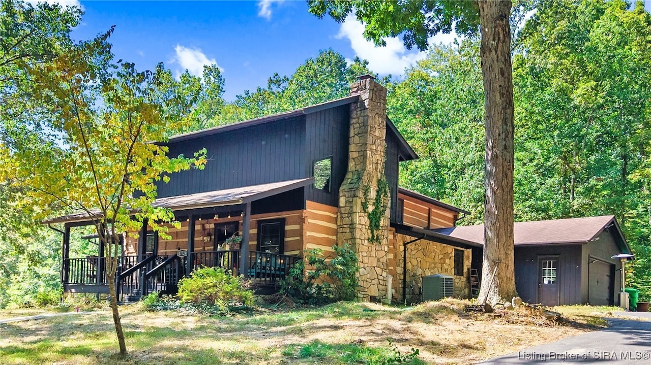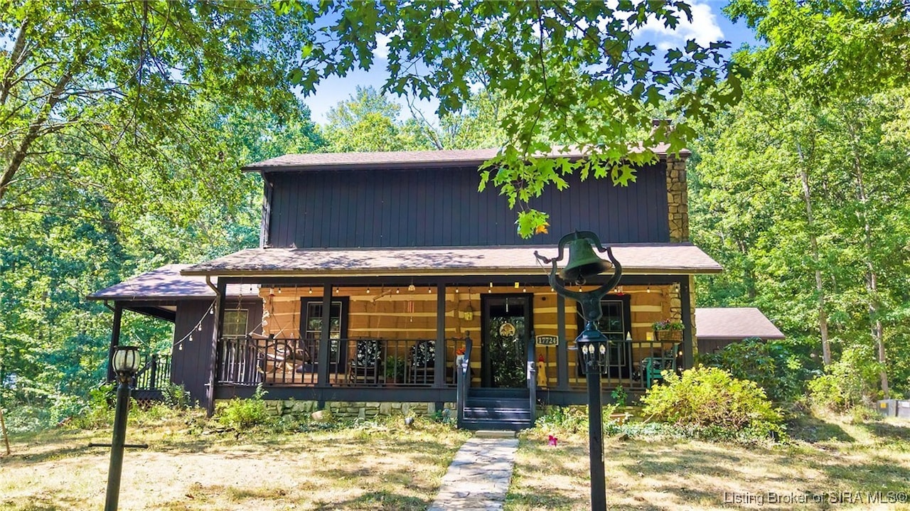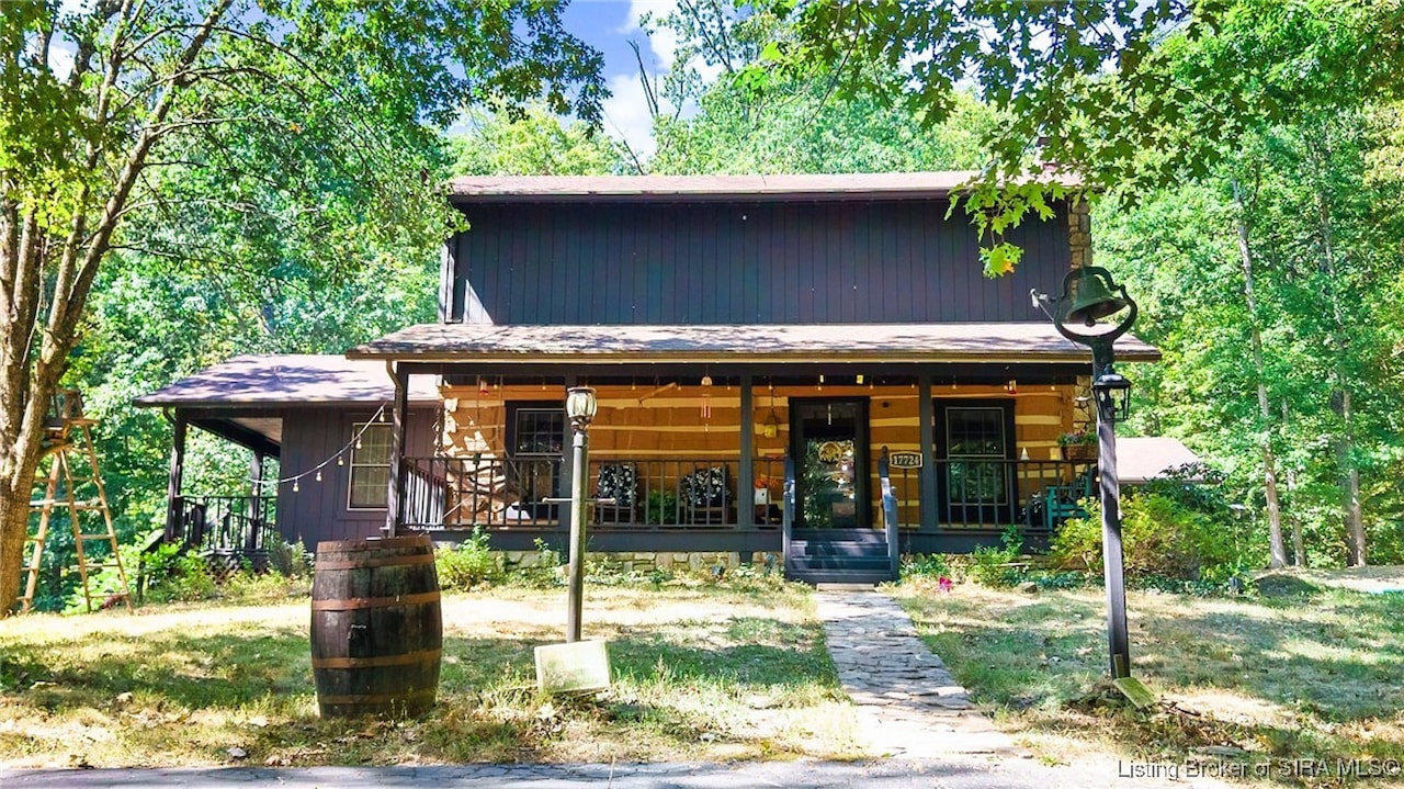 HOME FOR THE HOLIDAYS! You could be in this home before Christmas & no payment before 2026 if you hurry! Charming Log Cabin Retreat on 3.5+ Secluded, Wooded Ac w/Pond! Escape to rustic elegance in this beautiful log cabin, tucked away on a peaceful wooded lot with a private pond & dock. Located just off Grant Line Road (Hwy 60), this serene property offers both privacy & convenience under 20 mins to the interstate & less than 30 minutes to Louisville. Enjoy fishing, hiking, & hunting all on your own land. The open-concept great room features stunning hardwood floors, a dramatic two-story stone fireplace, & exposed beams. It flows seamlessly into the kitchen, which includes a center island & with the updated range/oven. The dining area w/bay window overlooks the pond, ideal for daily meals or entertaining. The main-level primary suite includes a spacious bath with double vanity and antique claw-foot tub. A full-length covered back porch provides tranquil views of the pond & woods. Upstairs, find 2 additional bedrooms (one in the loft), a full bath, & an office great for guests or remote work. Though built in 1991, the home features logs believed to date to the 1800s (per seller), blending historic charm with modern comfort. Updates include a newer HVAC (<2 years), water heater (~4 years), & roof (~8 years). A recently added third full bath on the main level offers added flexibility. Plenty of parking with a 1.5-car att. garage plus a 3-car detached garage. Sq ft /rm sz approx.