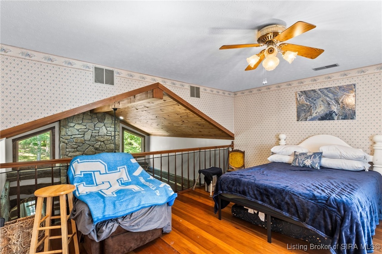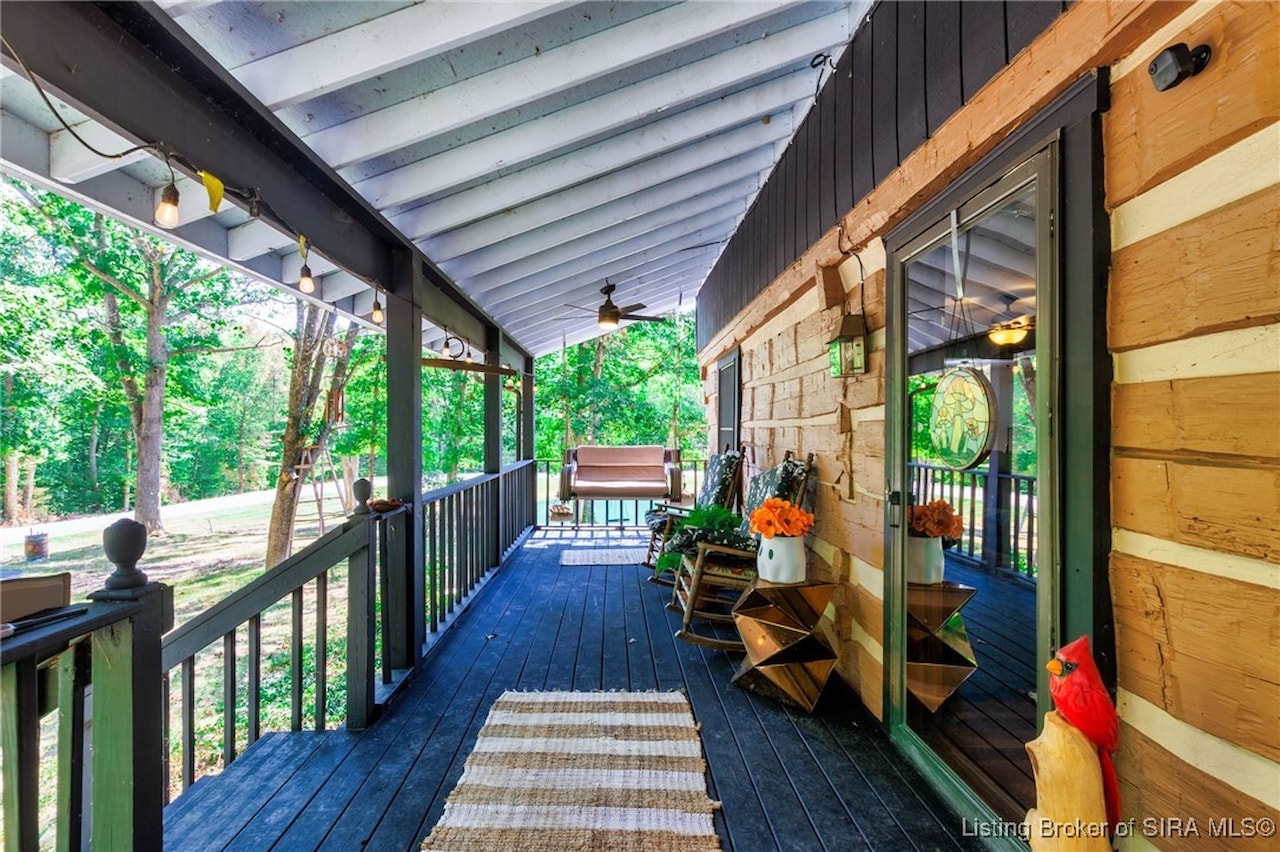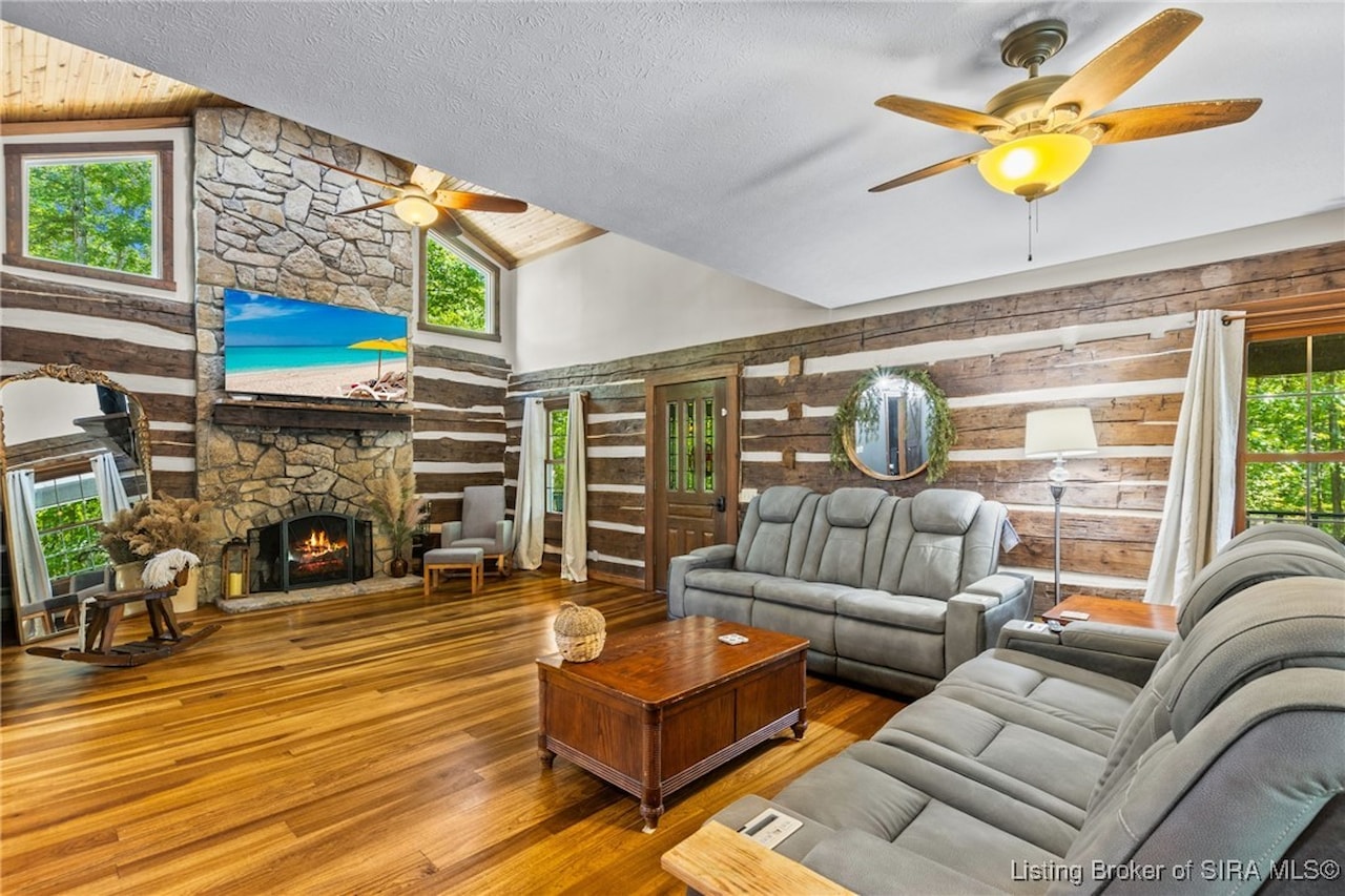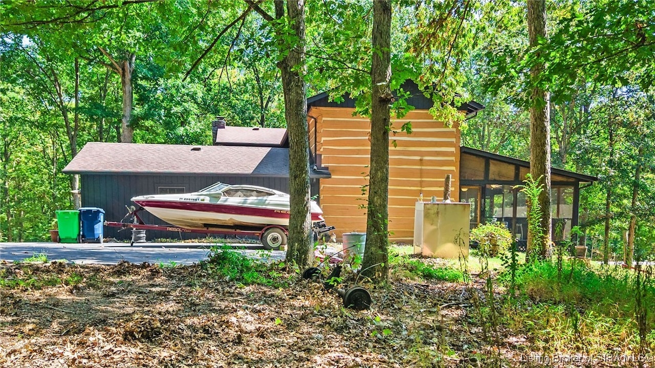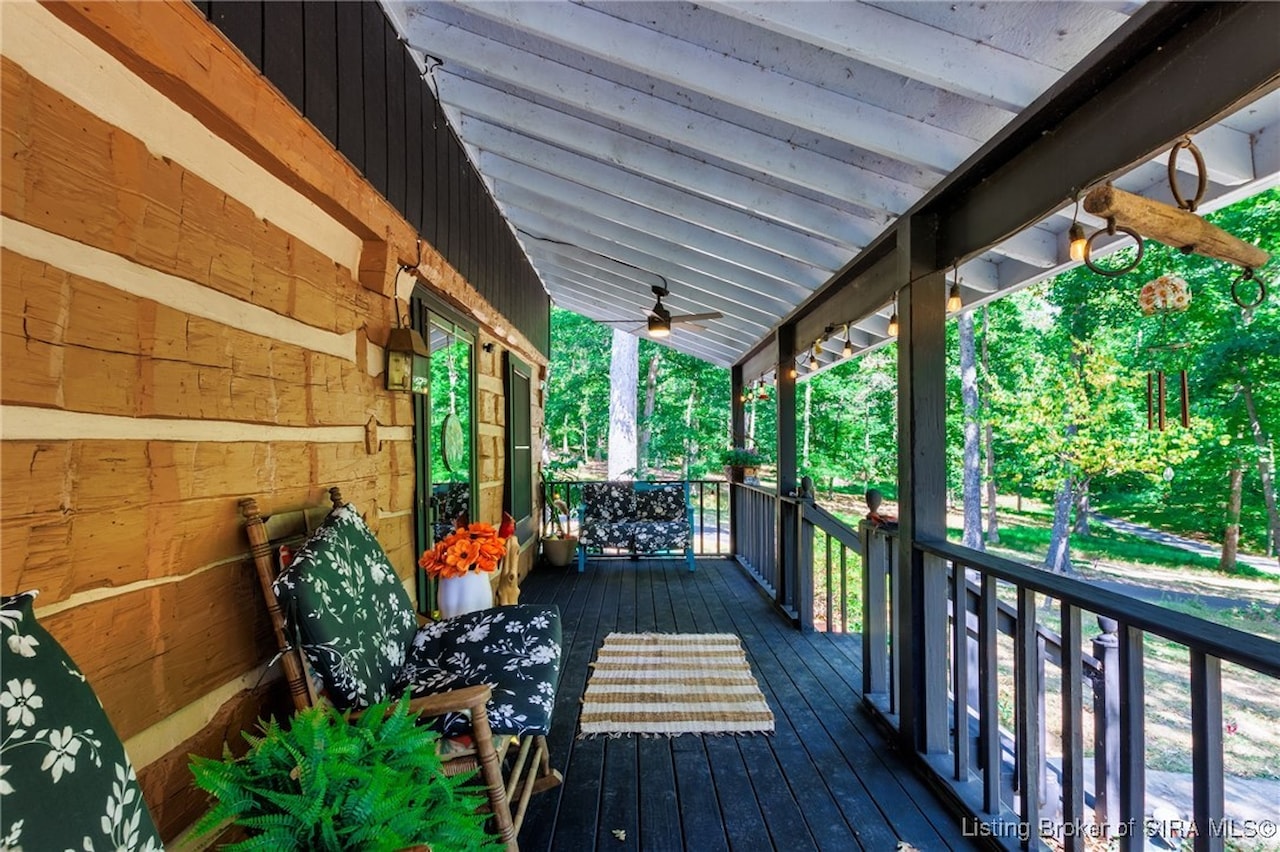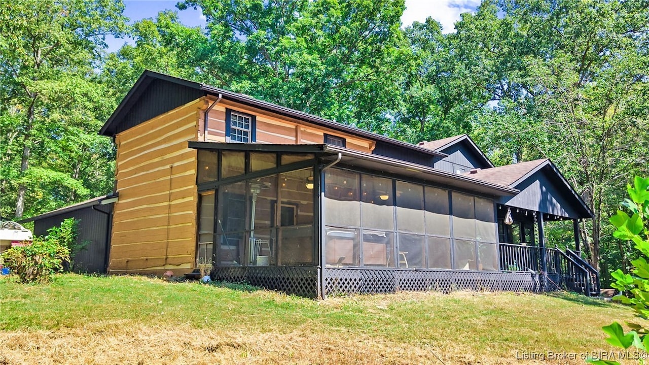 HOME FOR THE HOLIDAYS! You could be in this home before Christmas & no payment before 2026 if you hurry! Charming Log Cabin Retreat on 3.5+ Secluded, Wooded Ac w/Pond! Escape to rustic elegance in this beautiful log cabin, tucked away on a peaceful wooded lot with a private pond & dock. Located just off Grant Line Road (Hwy 60), this serene property offers both privacy & convenience under 20 mins to the interstate & less than 30 minutes to Louisville. Enjoy fishing, hiking, & hunting all on your own land. The open-concept great room features stunning hardwood floors, a dramatic two-story stone fireplace, & exposed beams. It flows seamlessly into the kitchen, which includes a center island & with the updated range/oven. The dining area w/bay window overlooks the pond, ideal for daily meals or entertaining. The main-level primary suite includes a spacious bath with double vanity and antique claw-foot tub. A full-length covered back porch provides tranquil views of the pond & woods. Upstairs, find 2 additional bedrooms (one in the loft), a full bath, & an office great for guests or remote work. Though built in 1991, the home features logs believed to date to the 1800s (per seller), blending historic charm with modern comfort. Updates include a newer HVAC (<2 years), water heater (~4 years), & roof (~8 years). A recently added third full bath on the main level offers added flexibility. Plenty of parking with a 1.5-car att. garage plus a 3-car detached garage. Sq ft /rm sz approx.