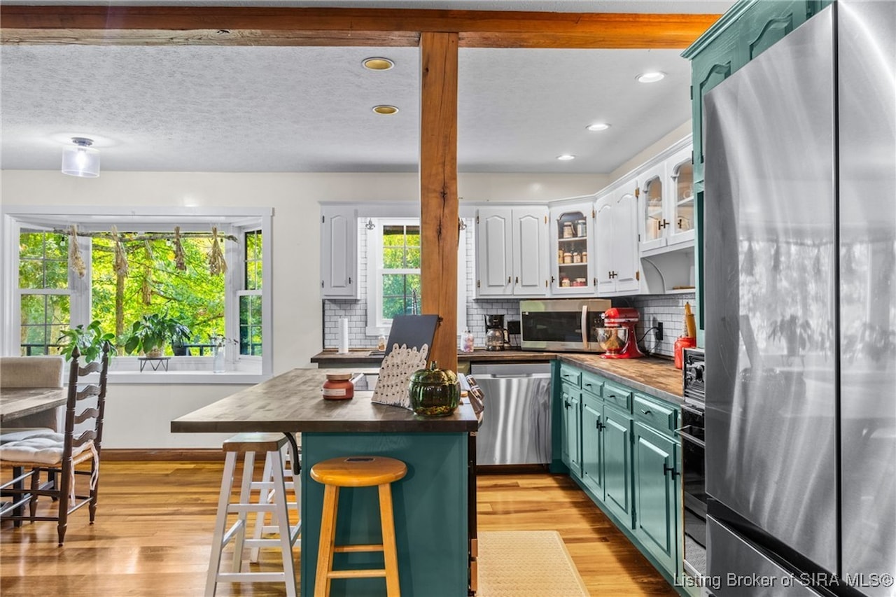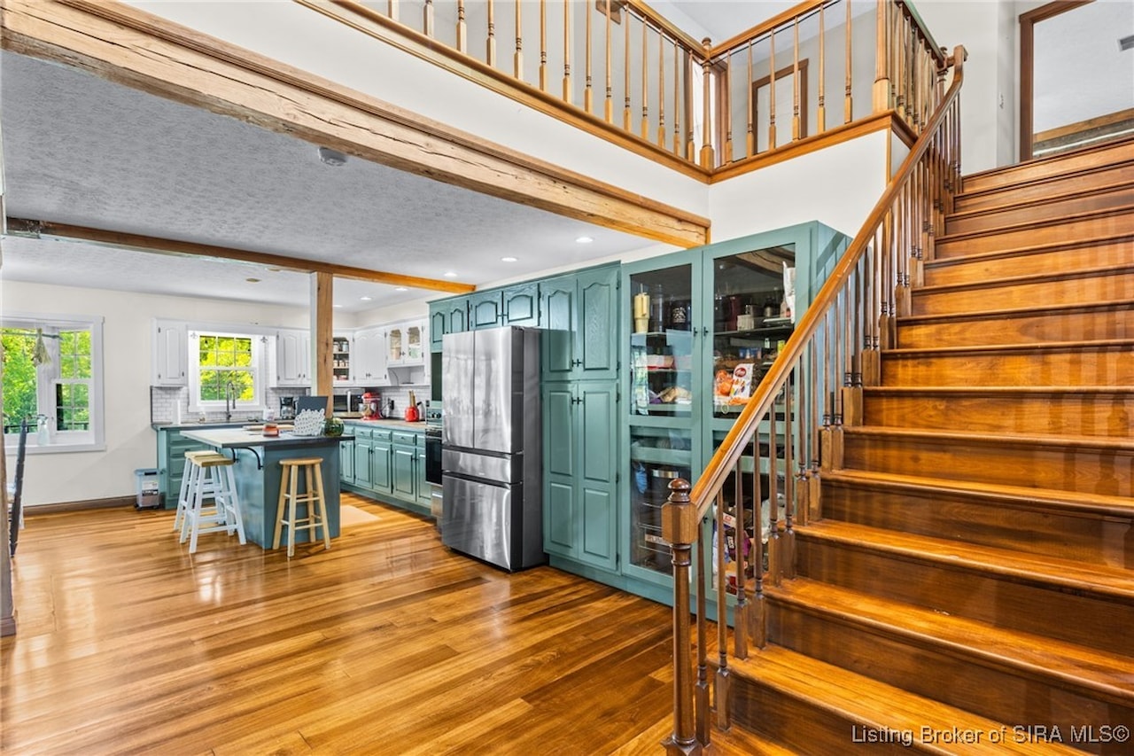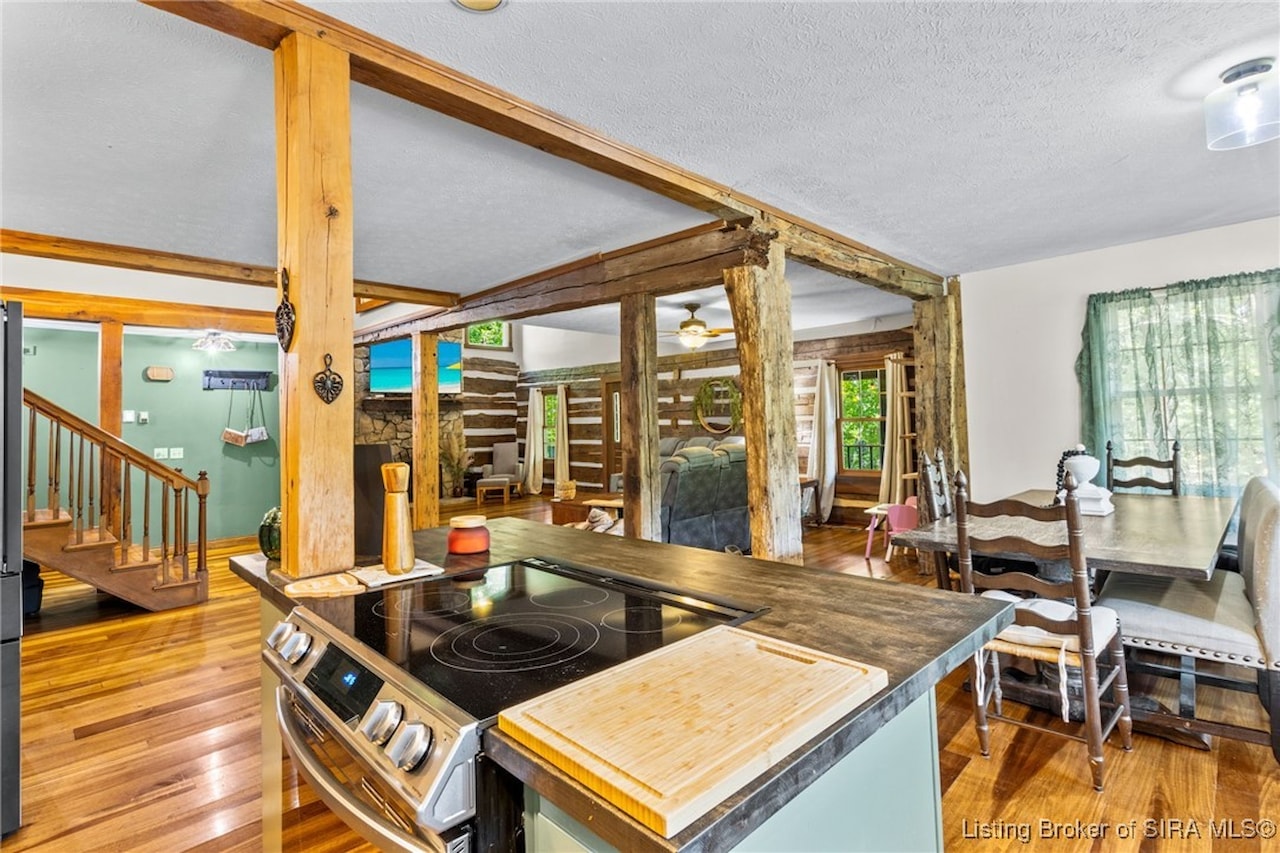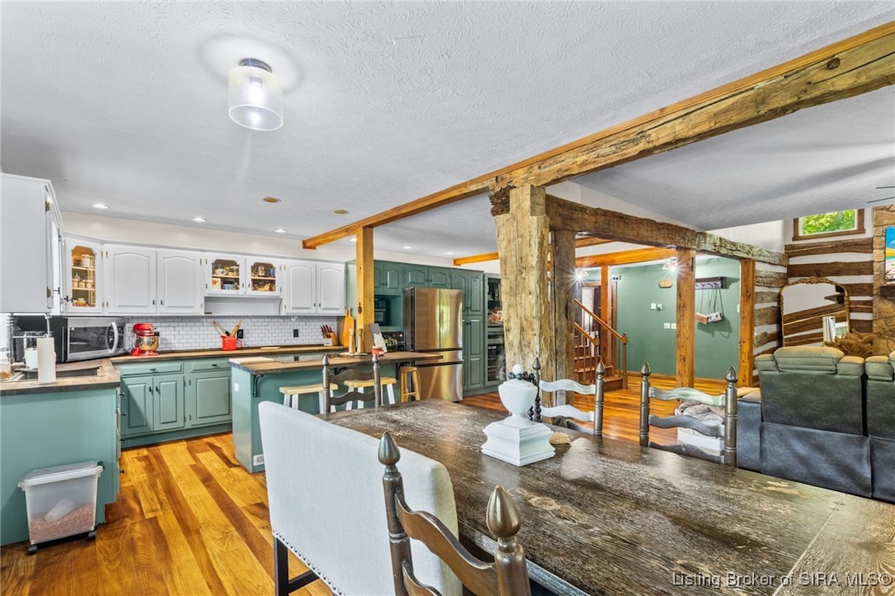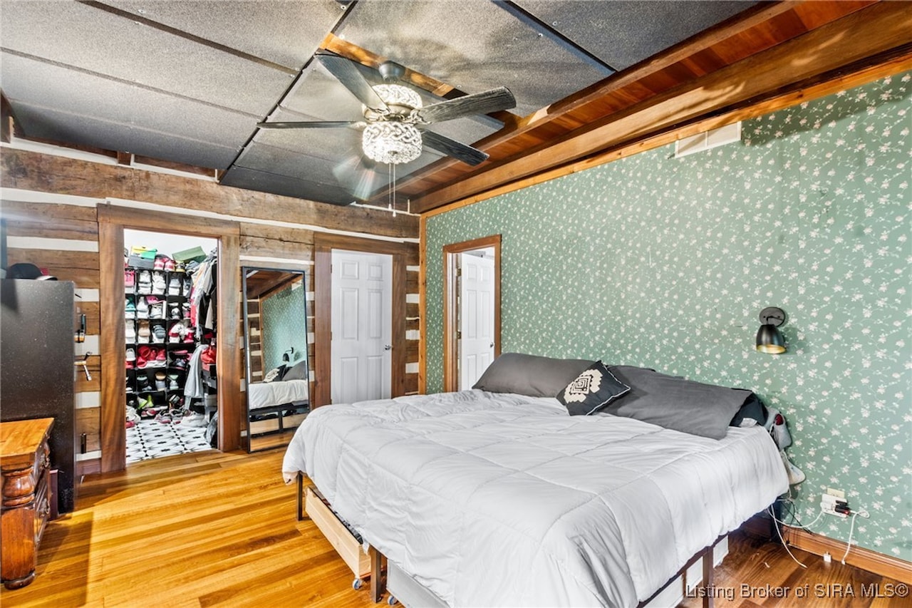 HOME FOR THE HOLIDAYS! You could be in this home before Christmas & no payment before 2026 if you hurry! Charming Log Cabin Retreat on 3.5+ Secluded, Wooded Ac w/Pond! Escape to rustic elegance in this beautiful log cabin, tucked away on a peaceful wooded lot with a private pond & dock. Located just off Grant Line Road (Hwy 60), this serene property offers both privacy & convenience under 20 mins to the interstate & less than 30 minutes to Louisville. Enjoy fishing, hiking, & hunting all on your own land. The open-concept great room features stunning hardwood floors, a dramatic two-story stone fireplace, & exposed beams. It flows seamlessly into the kitchen, which includes a center island & with the updated range/oven. The dining area w/bay window overlooks the pond, ideal for daily meals or entertaining. The main-level primary suite includes a spacious bath with double vanity and antique claw-foot tub. A full-length covered back porch provides tranquil views of the pond & woods. Upstairs, find 2 additional bedrooms (one in the loft), a full bath, & an office great for guests or remote work. Though built in 1991, the home features logs believed to date to the 1800s (per seller), blending historic charm with modern comfort. Updates include a newer HVAC (<2 years), water heater (~4 years), & roof (~8 years). A recently added third full bath on the main level offers added flexibility. Plenty of parking with a 1.5-car att. garage plus a 3-car detached garage. Sq ft /rm sz approx.