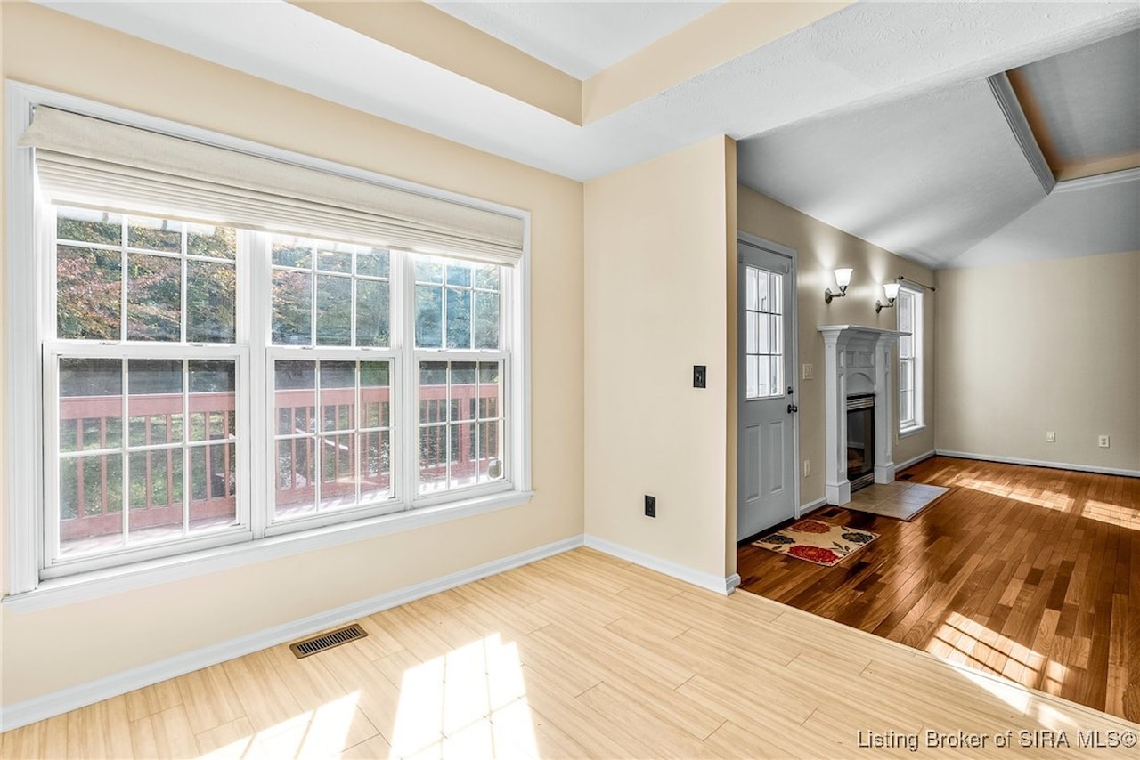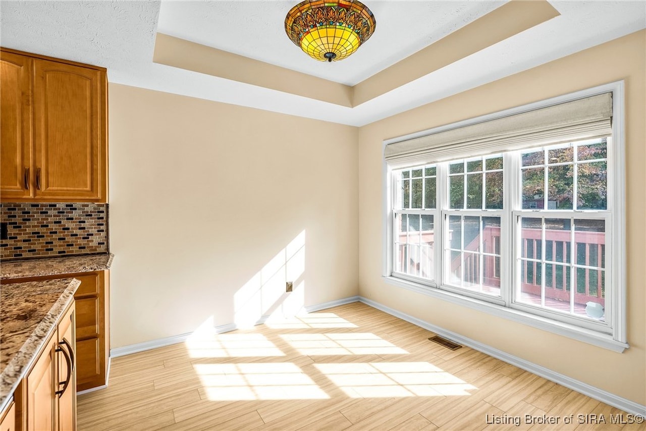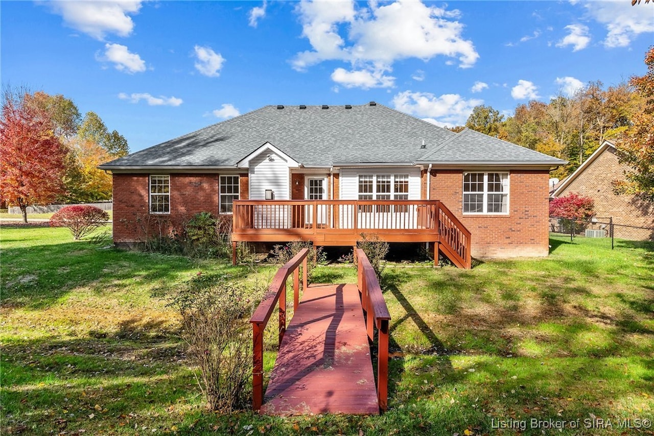 Nestled on one of the most beautiful, wooded lots in Sterling Oaks, this all-brick ranch offers over 3,000 sq. ft. with 3 bedrooms, 3 full baths, multiple living areas, and an on-demand generator designed for comfort and style. Step inside the welcoming foyer and into the elegant living room featuring 10' tray ceilings, a white fireplace, hardwood floors, & tall windows that fill the space with natural light. The formal dining room shines with a trio of windows, white wainscoting, 12' ceilings, and beautiful crown molding the perfect setting for memorable dinners. The eat-in kitchen is a cook's delight with maple cabinetry, granite countertops, glass tile backsplash, and a raised buffet bar. Stainless steel appliances include a double-door, double-drawer refrigerator and a gas range. The sunny breakfast area overlooks the picturesque backyard, making mornings a pleasure. The split-bedroom floor plan offers privacy, with a spacious primary suite featuring a luxurious en-suite bath complete with double vanities, a deep tub, a water closet, and a large walk-in closet. Downstairs, the finished lower level impresses with a large family room, a second expansive entertainment area, a full bath, and a versatile bonus room ideal for a home office, gym, or guest space. Out back, enjoy your own private retreat. Relax on the large deck and start grilling! A cute footbridge crosses a drain channel, connecting the sunny open yard to a wooded area perfect for forts and adventures!