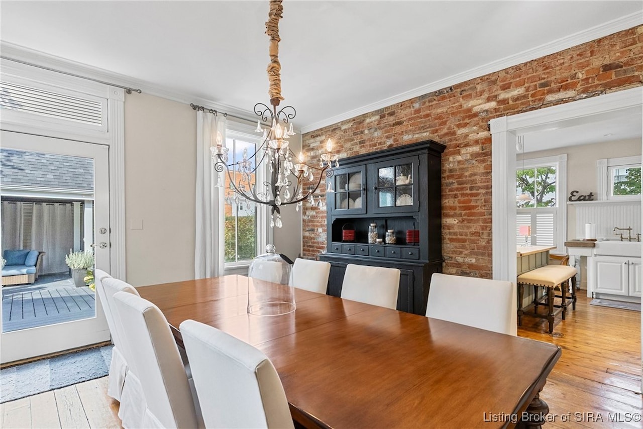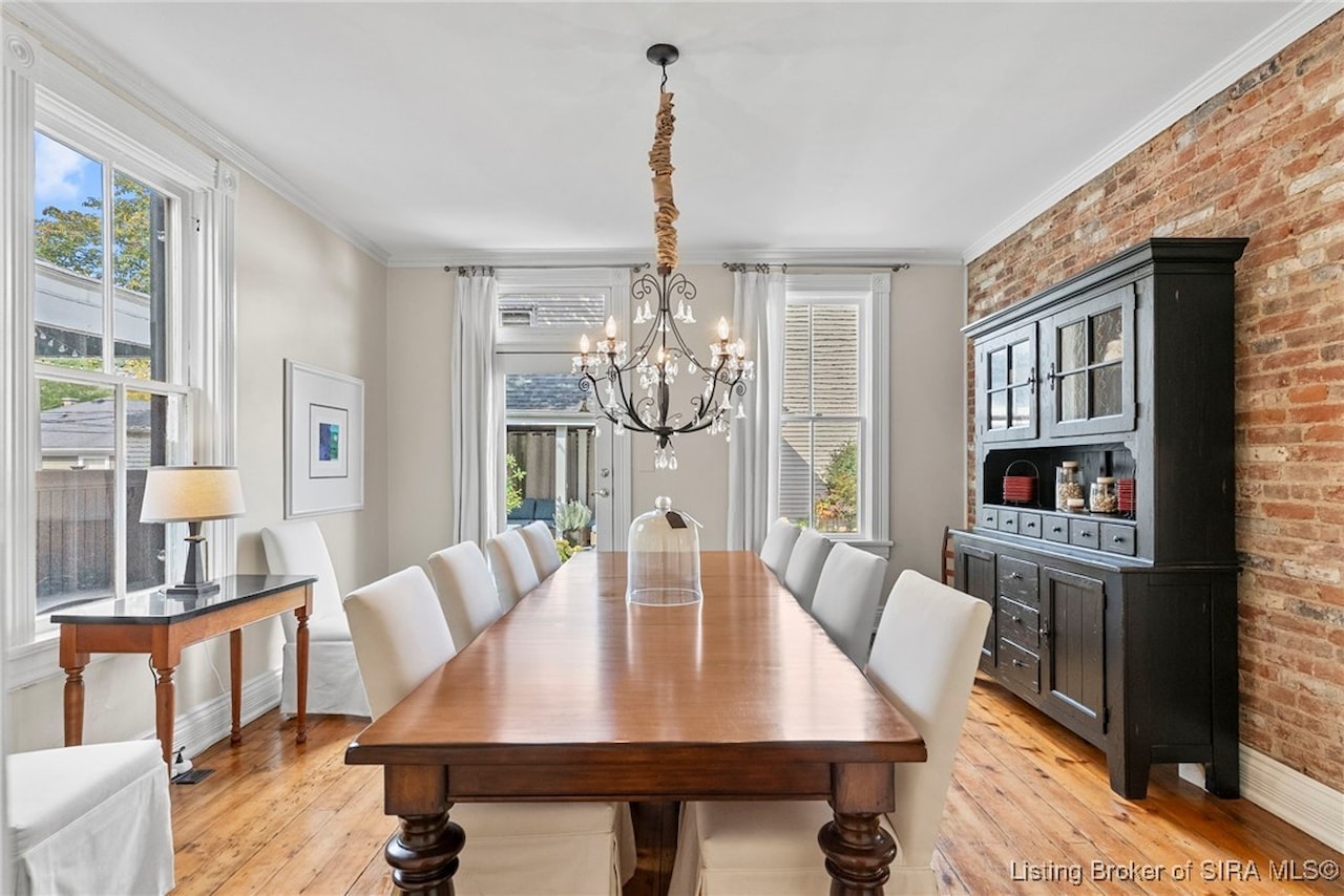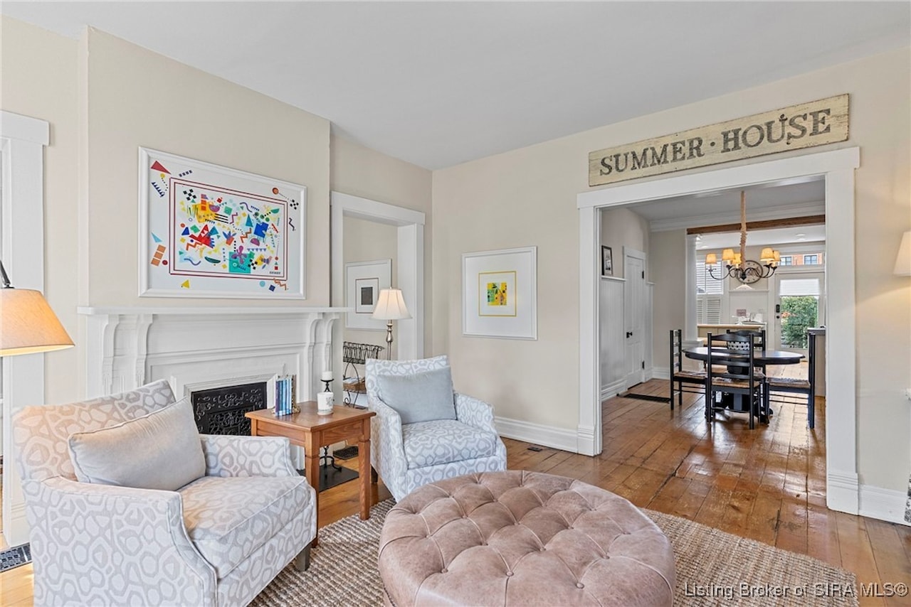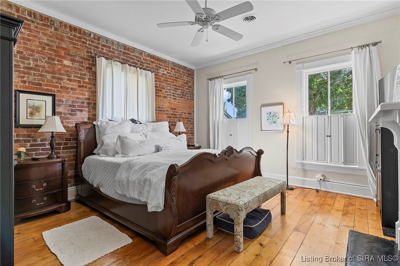BEAUTIFUL ITALIANATE HISTORIC HOME IN DOWNTOWN MADISON. This striking two-story brick home combines timeless architecture with modern updates. Offering 3 bedrooms and 2.5 bathrooms, the home showcases beautiful hardwood floors throughout and four fireplaces that add character. The main level features a spacious eat-in kitchen with an island/breakfast bar, a formal dining room, living room, family room, and a large foyer that provides flexible use, along with a lovely powder room. Upstairs, you'll find three bedrooms and two updated bathrooms, including a large primary suite with a walk-in closet that conveniently houses the laundry. Step outside to your private backyard oasis, complete with a deck, covered patio, and hot tub. The lush, thoughtfully designed landscaping creates a retreat-like setting while ensuring low-maintenance living. Architectural details such as the exposed beams and exposed brick walls, along with the abundant natural light highlight the home's historic charm while offering a comfortable modern lifestyle.