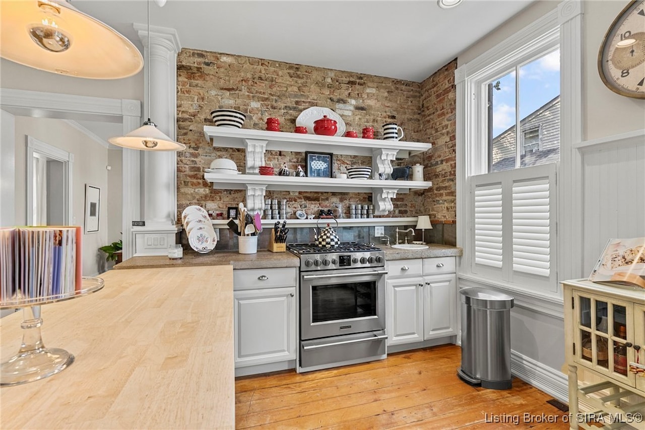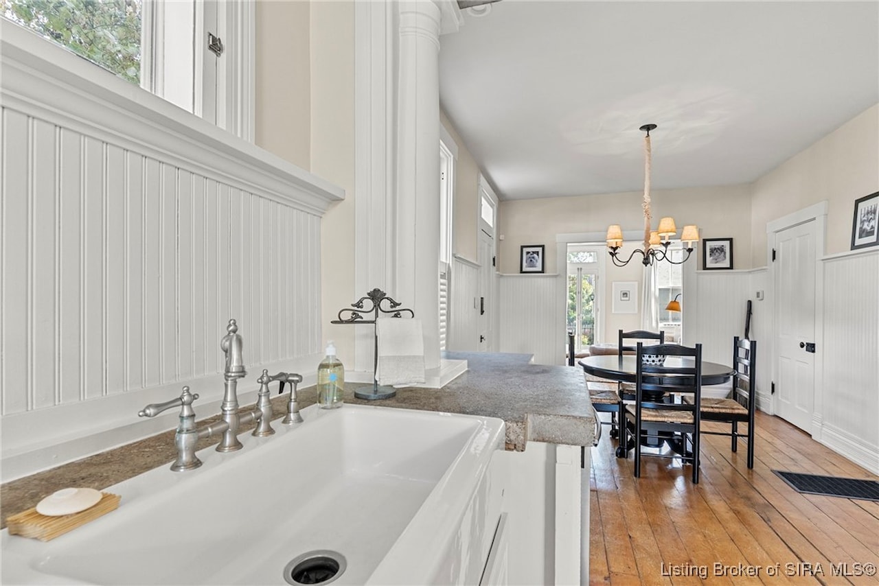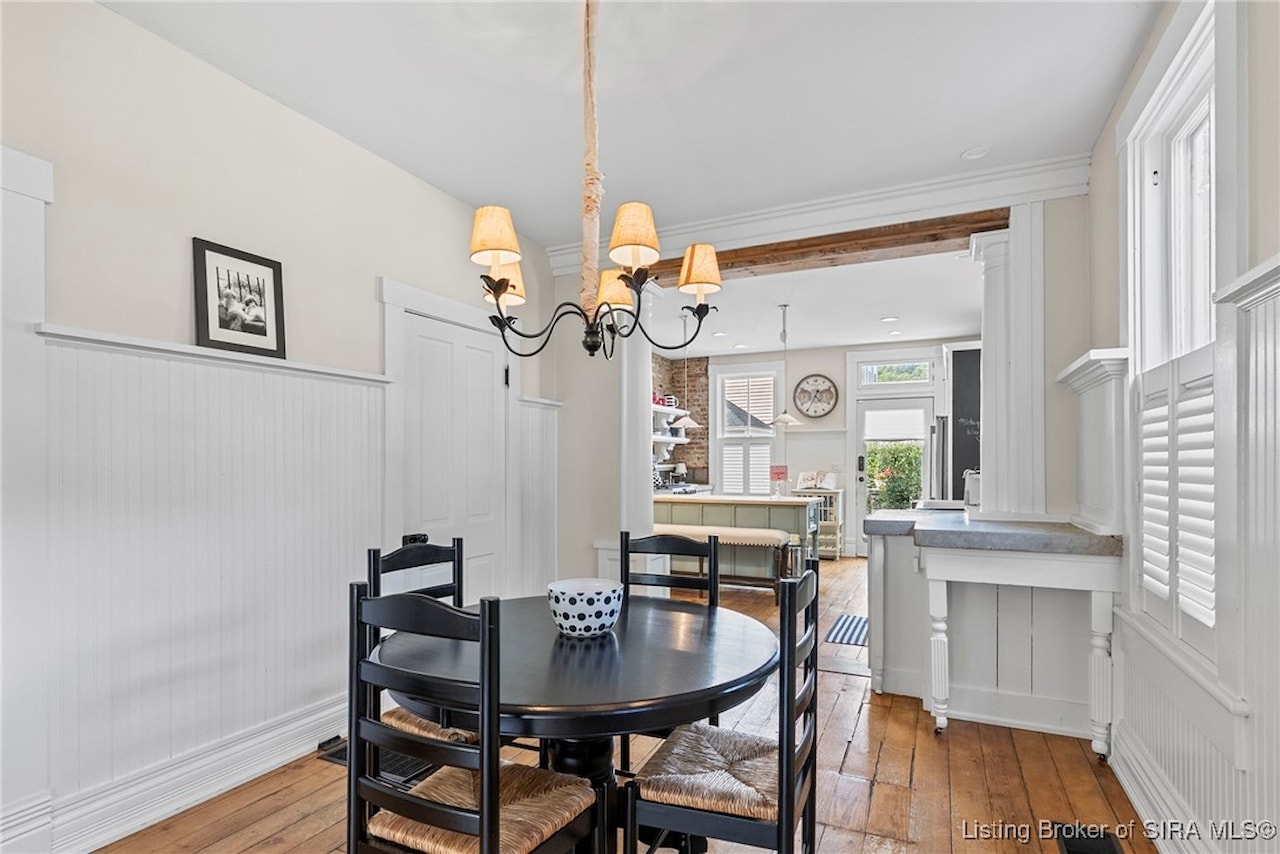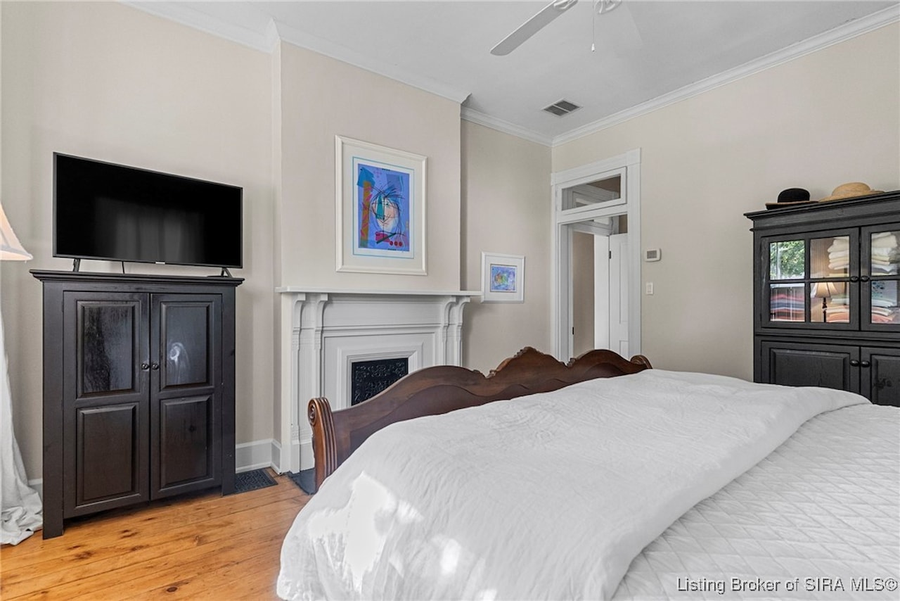 BEAUTIFUL ITALIANATE HISTORIC HOME IN DOWNTOWN MADISON. This striking two-story brick home combines timeless architecture with modern updates. Offering 3 bedrooms and 2.5 bathrooms, the home showcases beautiful hardwood floors throughout and four fireplaces that add character. The main level features a spacious eat-in kitchen with an island/breakfast bar, a formal dining room, living room, family room, and a large foyer that provides flexible use, along with a lovely powder room. Upstairs, you'll find three bedrooms and two updated bathrooms, including a large primary suite with a walk-in closet that conveniently houses the laundry. Step outside to your private backyard oasis, complete with a deck, covered patio, and hot tub. The lush, thoughtfully designed landscaping creates a retreat-like setting while ensuring low-maintenance living. Architectural details such as the exposed beams and exposed brick walls, along with the abundant natural light highlight the home's historic charm while offering a comfortable modern lifestyle.