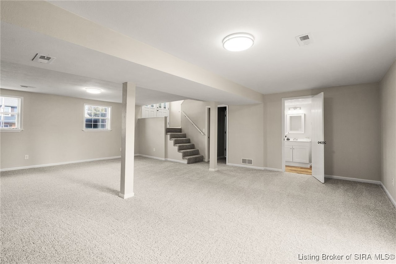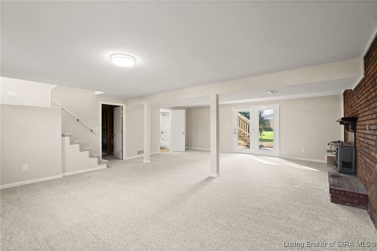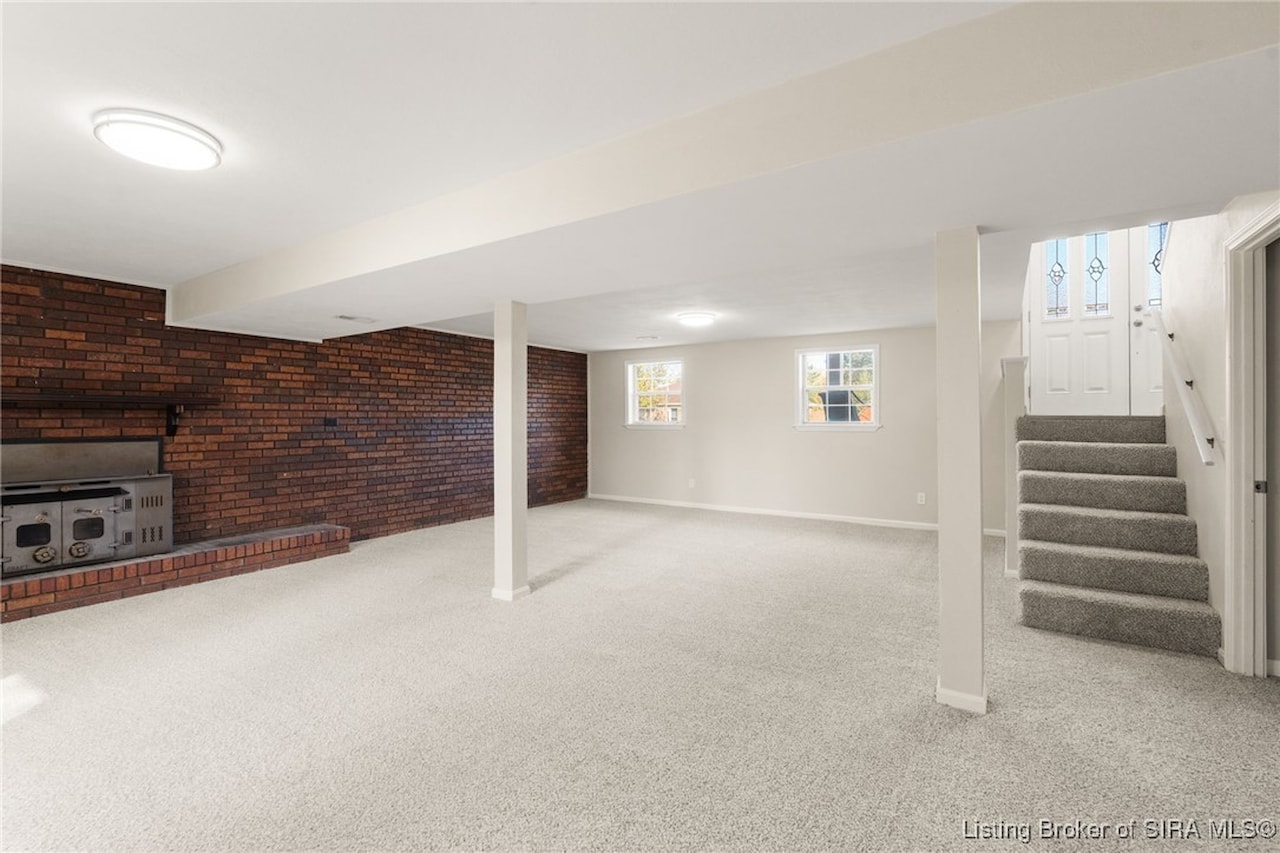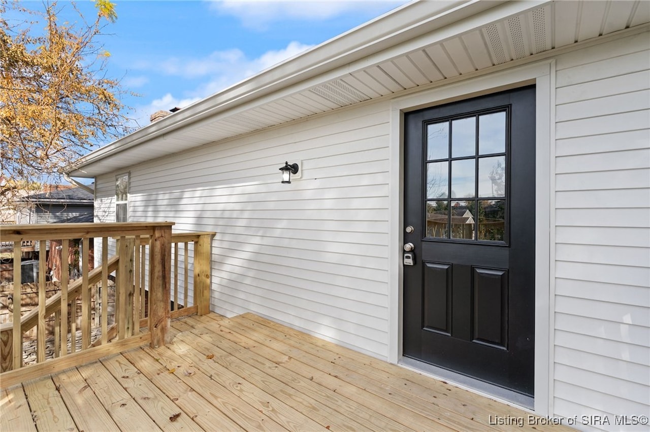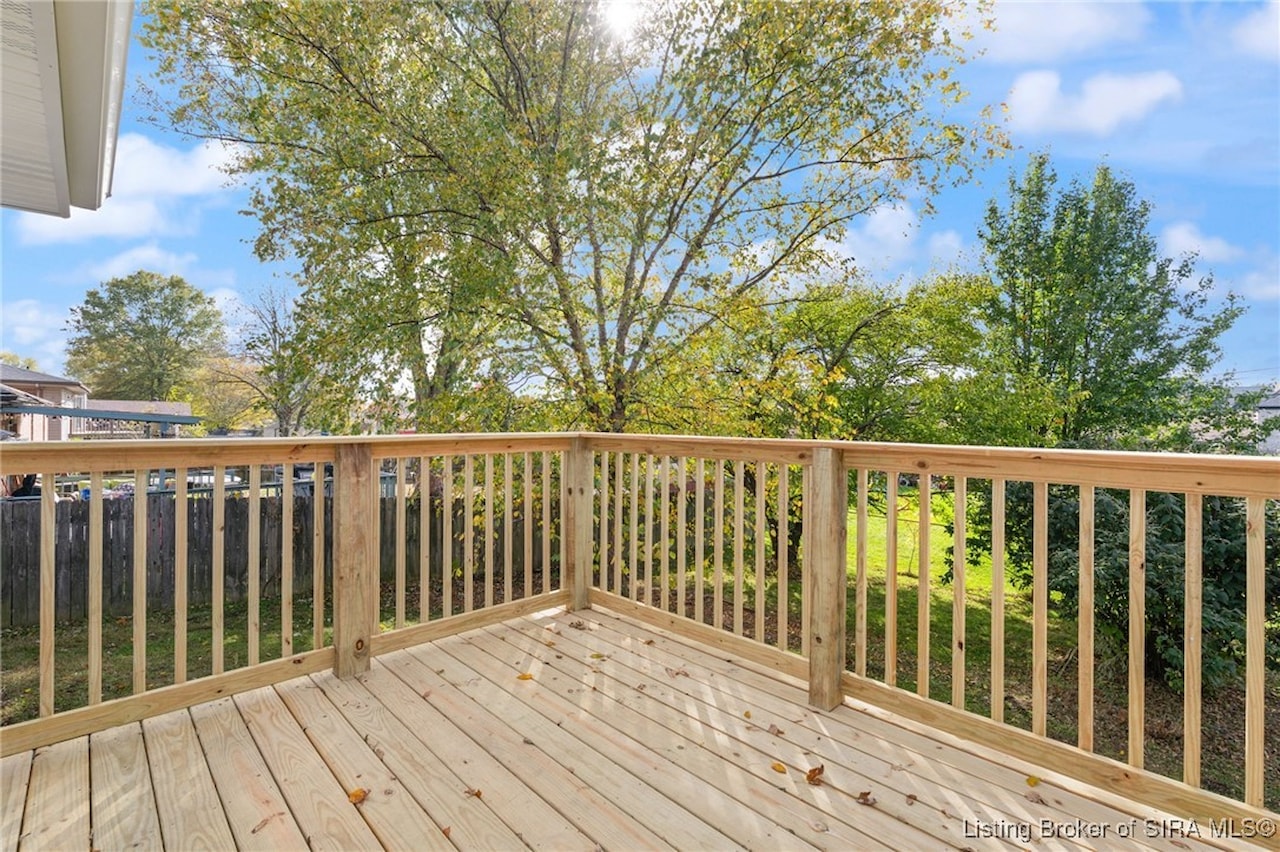 OPEN HOUSE, Sunday, November 9, 1:00-3:00!! Discover an exceptional opportunity in a prime location, just moments away from shopping, dining, and I-265. This beautifully updated bi-level home features 4 bedrooms and 2 elegantly renovated full bathrooms, complete with modern flooring, stylish vanities, and contemporary lighting. The main living areas showcase new luxury vinyl plank flooring, while fresh carpeting enhances the comfort of the bedrooms and family room. The eat-in kitchen is a delight, boasting butcher block countertops and stainless-steel appliances, including a dishwasher and range/oven. Step outside from the kitchen to a newly constructed wood deck, perfect for entertaining and summer cookouts. The inviting lower-level family room, adorned with a cozy insert buck stove and a charming brick wall, offers a warm retreat. With a walkout leading to a concrete patio and a fenced backyard, this home is truly move-in ready and has a new roof seize the chance to make it yours!