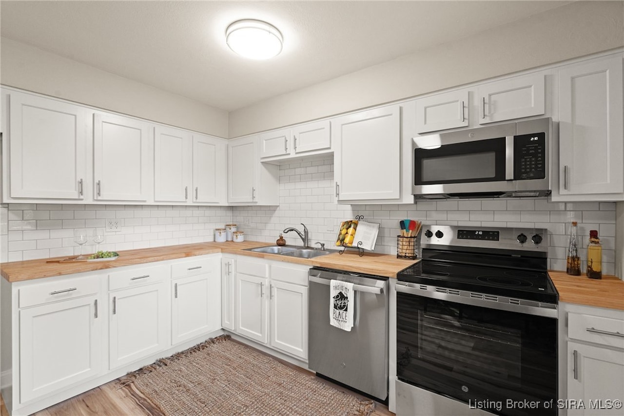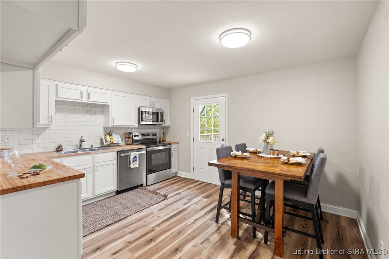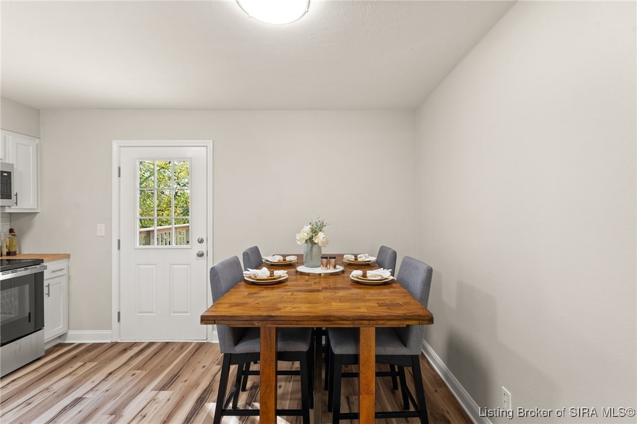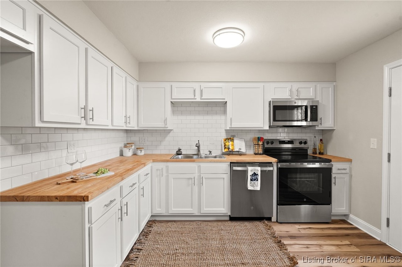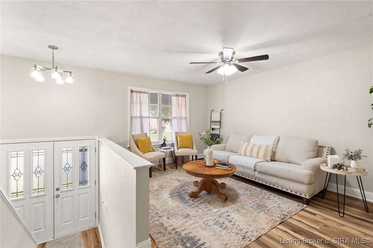 OPEN HOUSE, Sunday, November 9, 1:00-3:00!! Discover an exceptional opportunity in a prime location, just moments away from shopping, dining, and I-265. This beautifully updated bi-level home features 4 bedrooms and 2 elegantly renovated full bathrooms, complete with modern flooring, stylish vanities, and contemporary lighting. The main living areas showcase new luxury vinyl plank flooring, while fresh carpeting enhances the comfort of the bedrooms and family room. The eat-in kitchen is a delight, boasting butcher block countertops and stainless-steel appliances, including a dishwasher and range/oven. Step outside from the kitchen to a newly constructed wood deck, perfect for entertaining and summer cookouts. The inviting lower-level family room, adorned with a cozy insert buck stove and a charming brick wall, offers a warm retreat. With a walkout leading to a concrete patio and a fenced backyard, this home is truly move-in ready and has a new roof seize the chance to make it yours!