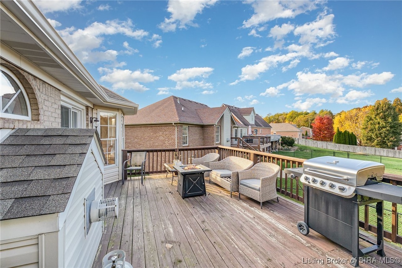 Check it out!! Wonderfully priced home in Floyds Knobs!! Welcome home to this beautiful 3-bedroom, 2.5-bath residence in the highly desired Forest Springs neighborhood of Floyds Knobs, Indiana. Nestled in the award-winning Floyd Central School District, this home features gorgeous hardwood floors throughout and a stylish eat-in kitchen perfect for family gatherings. Enjoy cozy evenings by the gas-burning fireplace or retreat to the finished walk-out basement, complete with a spacious family room, bonus room ideal for a home office, and a wood stove for added warmth. Lots of space in this home!! The outdoor living space impresses with a large deck, covered patio, and fenced backyard perfect for entertaining or relaxing. Additional highlights include a whirlpool tub with separate shower, 2-car garage, and an oversized driveway. Conveniently located close to shopping, dining, and local amenities, this home blends comfort, functionality, and location all in one. Schedule your showing today.